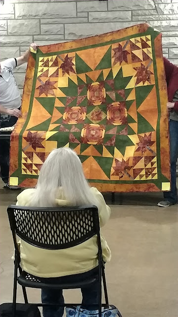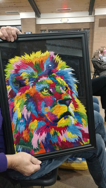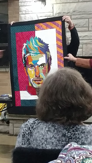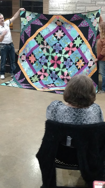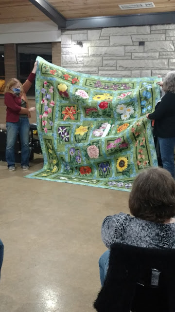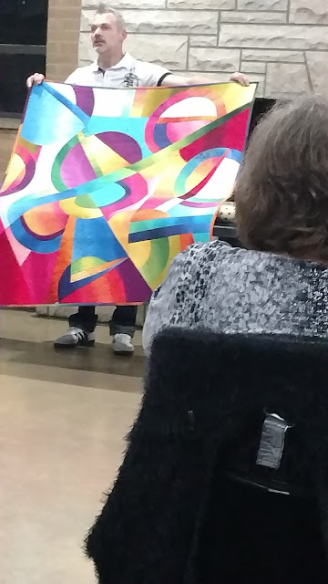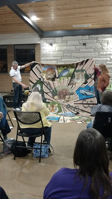 We had quilt guild last night. We are meeting in a park pavilion so the pictures are crummy, but, you can get an idea of the quilts that our presenter brought for us to see. Steve is from Brownsburg Indiana and has a shop called: not your average quilter.