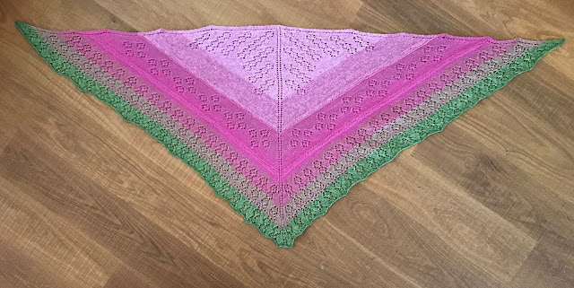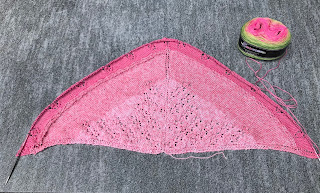 Bei diesem heissen Wetter habe ich schon an den Winter gedacht und mir einen Schal, Dreiecktuch gestrickt. Es machte einen Riesenspass.