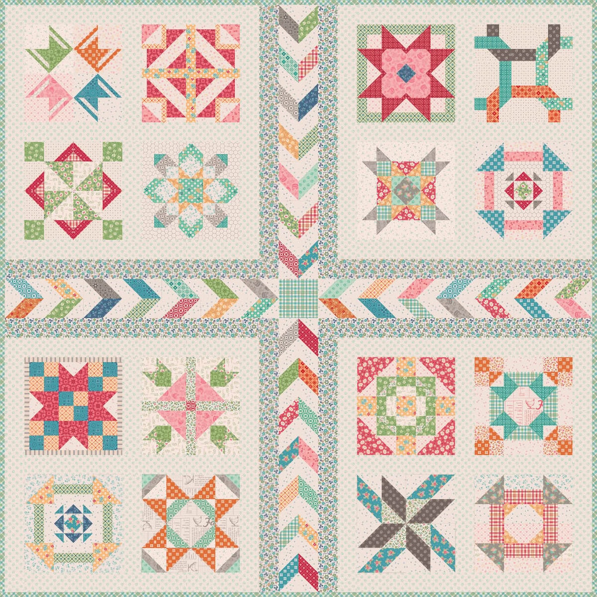 read moreThe start of the 2026 RBD Block Challenge is right around the corner, and this year, Lori Holt colored the quilt in her new Farmer’s Daughter collection with Riley Blake Designs. The color palette of the Farmer’s Daughter collection gives a wonderfully scrappy feel to this sampler quilt, and the greens and blues in the sashing and binding fabrics tie it all together! Every year, the RBD Block Challenge quilt inspires us to learn new techniques, explore new block designs, and connect with the quilting community. Keep reading for all the quilty details!
