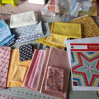 I picked up the pattern to make the Star Storm Quilt by Victoria Findlay Wolfe at the Annapolis Quilt Guild show Quilts by the Bay earlier this year. It has been sitting on my cutting table just waiting.