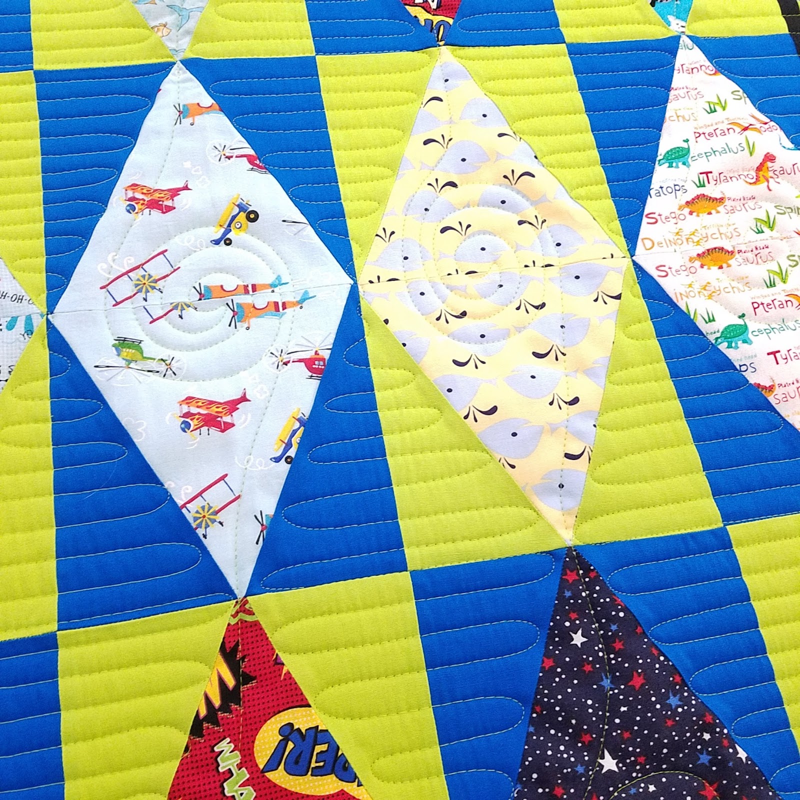I let the piecing help me decide what to do. Here is a close up. Custom quilting isn't my specialty, but I like doing it once in a while.