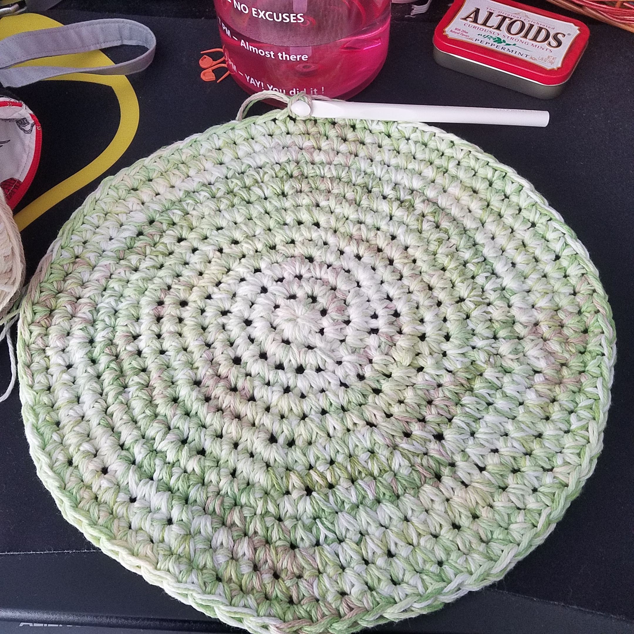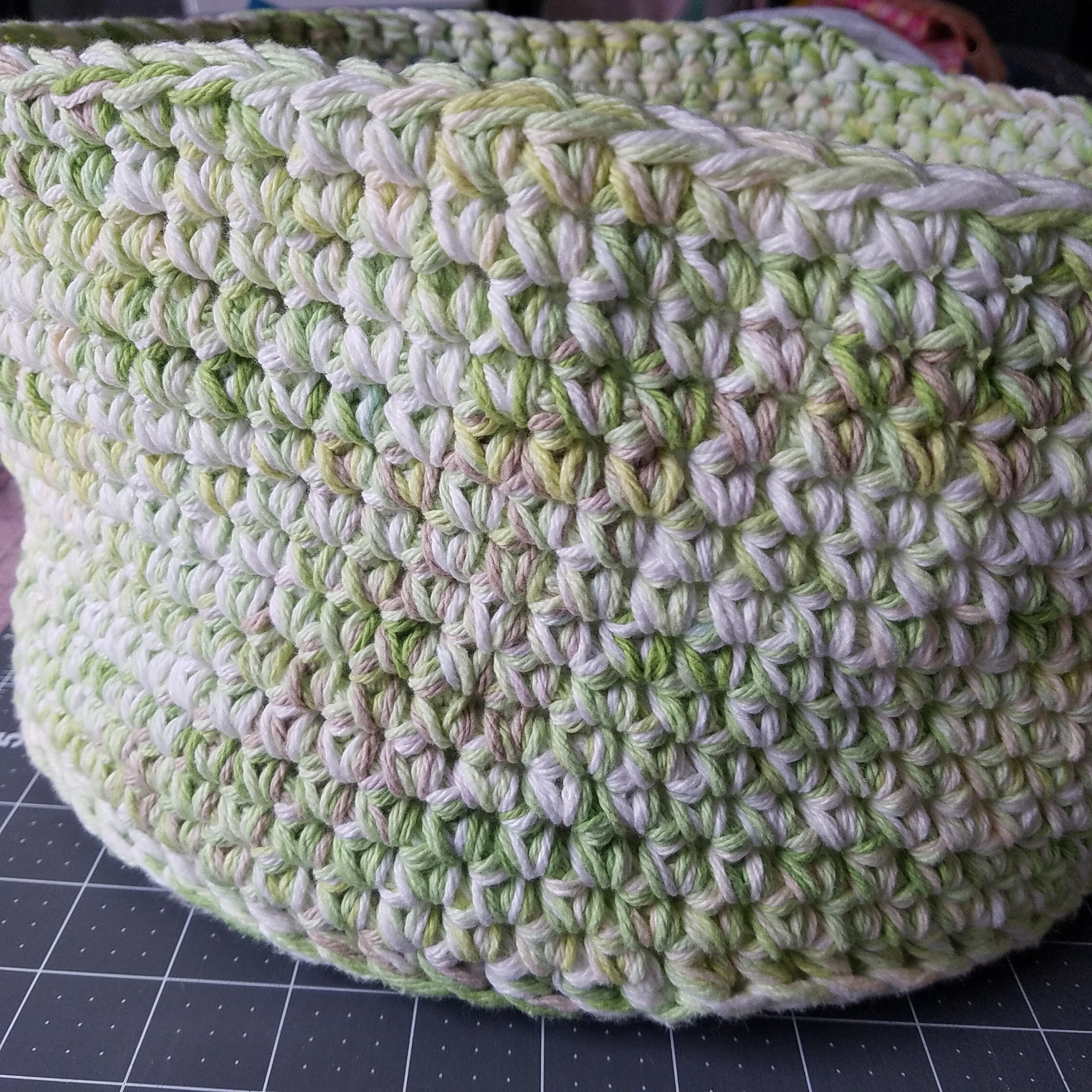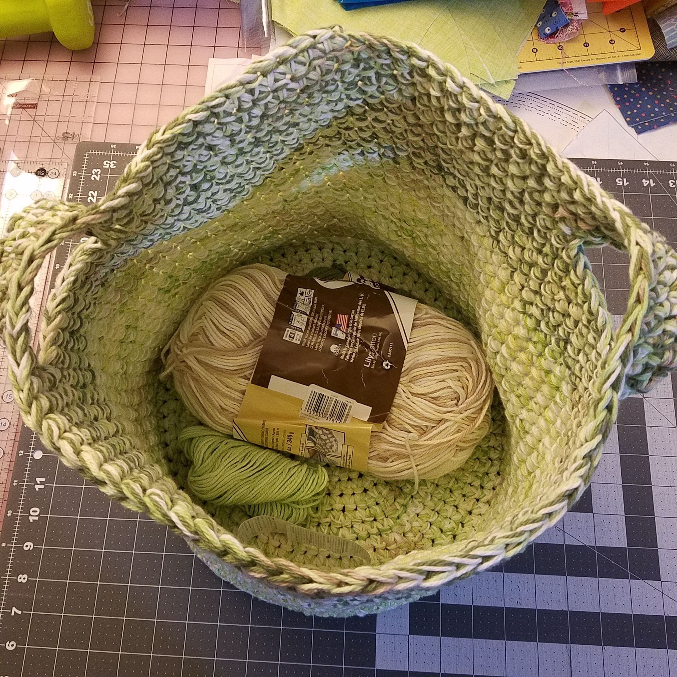 It was a good afternoon project. These fold up very nicely to tuck into your bag when going to the store. I've always got one in my bag.