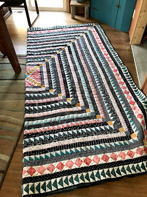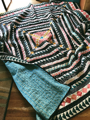 Well, all good things must come to an end. The HST Medallion quilt is completely finished up! All 102 inches! One of those projects started sort of by impulse, but not really. I'd looked and looked and LOOKED at a picture of an antique quilt, wistfully thinking about how cool it would be to own one.
