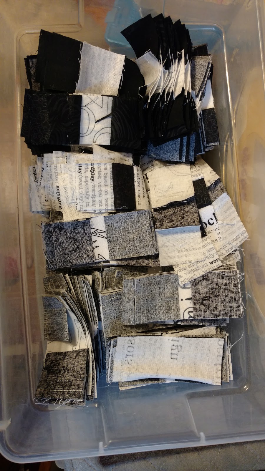I uncovered a small box with 6 inch squares. I believe, I bought it at a quilt show garage sale. I often wonder what the original quilter was planning and thinking while cutting her fabric into squares.