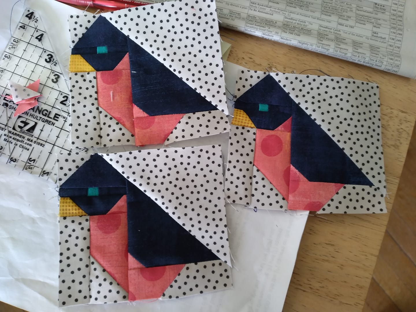 Some are facing right, some left. The birds are sitting on a branch with leaves as shown below. I haven't sewn the block together ...