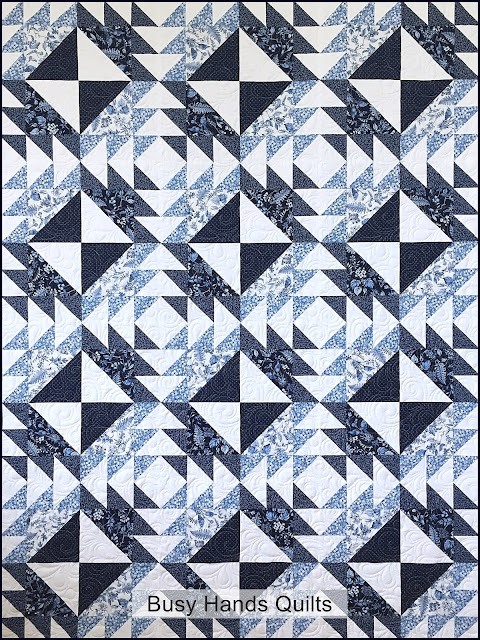 Annabelle is made with varying sizes of HSTs for a quick finish. Fabric placement creates a number of designs across the quilt top.