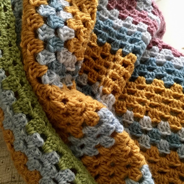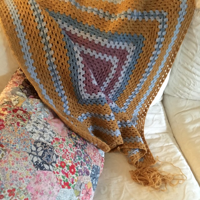 You saw this quilt before it was quilted and bound (click here for the post), where I worked with 12″ blocks I had made to test quilt patterns. It has become part of my work process: test patterns using similar fabrics so that, one day, I can turn those blocks into a quilt.