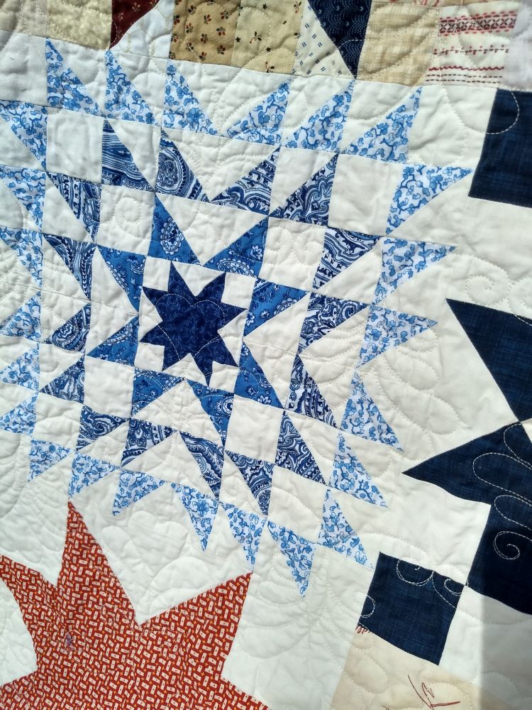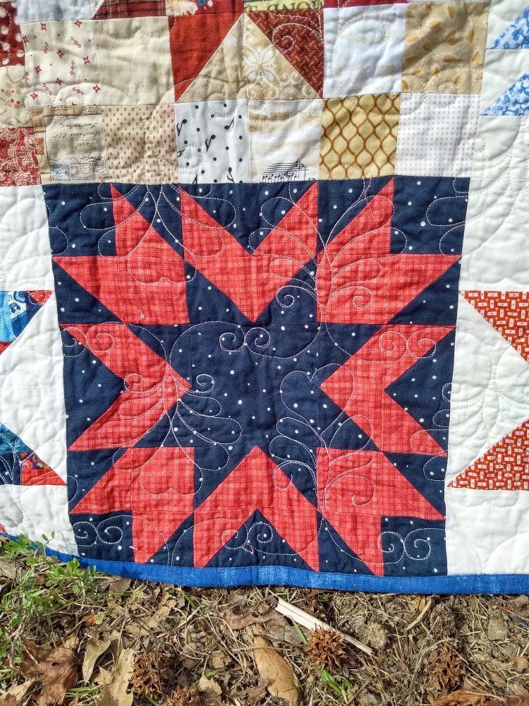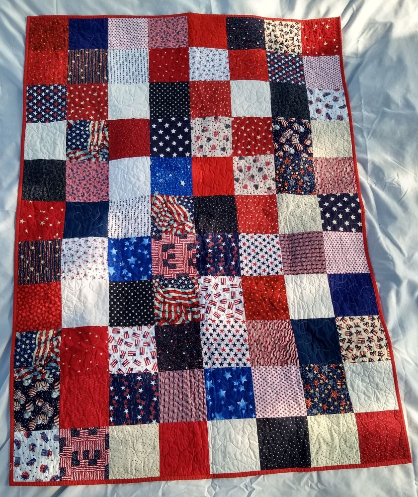 This week I have more red, white, and blue quilts to show. These first 4 were assembled and quilted by Pam M from block from the July 2021 block drive. I hope some of you can find your blocks in these photos. I took close ups of some of the coolest ones.