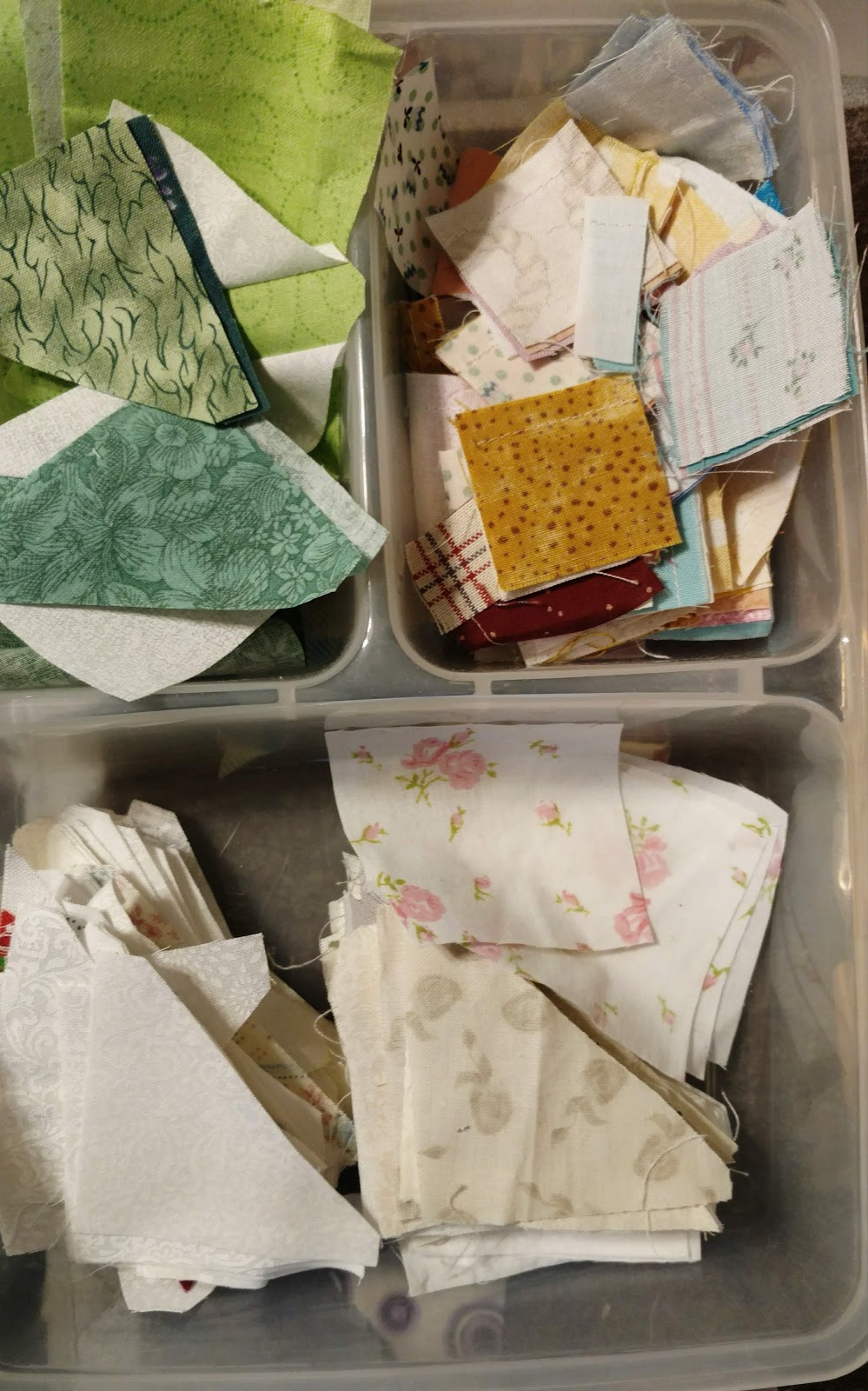 I try to sew something everyday that is not on a list. Although, the same things get chosen, so, in a way, there is "that" list. I have projects that I really want to see progress, even if slowly. But, I have some "other" projects without any plan for the finish. Blossom time ( Bonnie Hunter) is one of them. I cut a few scraps and then sew them. Then, I cut a few more and sew them. In this weird time, aimless has it's appeal.