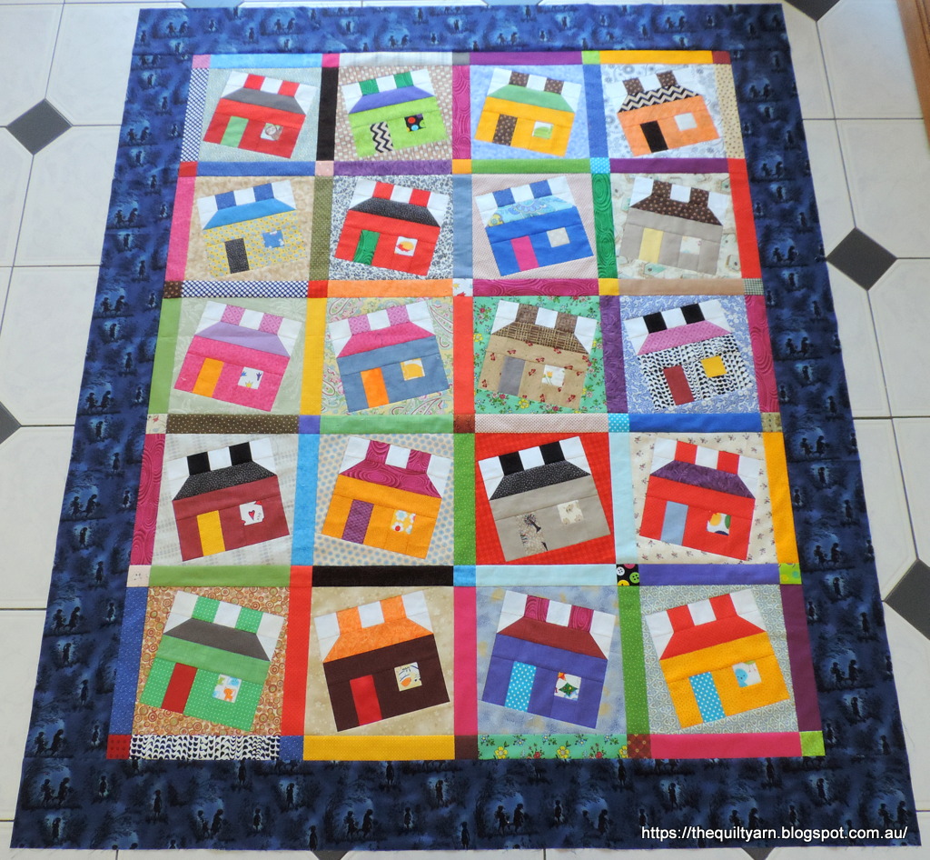 The House quilt top is finished. Took a bit longer than anticipated as I made it very scrappy indeed and underestimated the amount of time it would take to cut the scraps to the required size. But what a beauty!