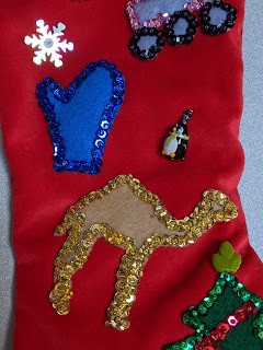 | Camel and mitten decals on Christmas stocking ... |