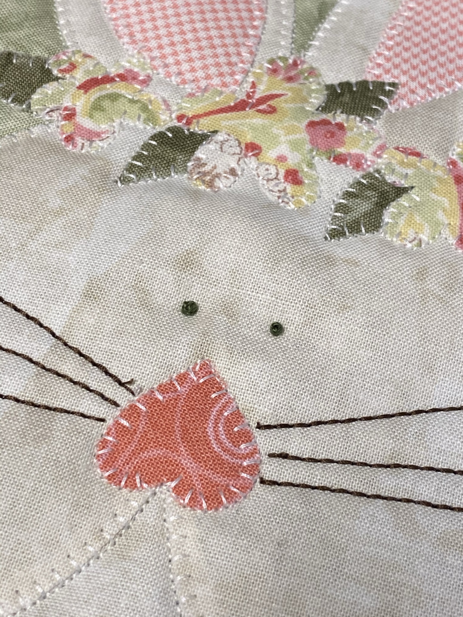 I like to use the embroidery stitches on my machine to make the bunny's eyes and whiskers. |