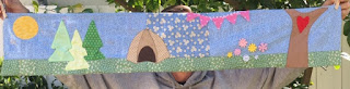 Richard has been bing-watching RV shows. The last one is about luxury RVs in the 3-400,00 dollar range. Not something we are the least interested in for ourselves, but it's fun to see what is out there in the world of big-spenders. Of course, this got me thinking of quilts with campers and RVs. And guess what? Yes, of course, there are a few.