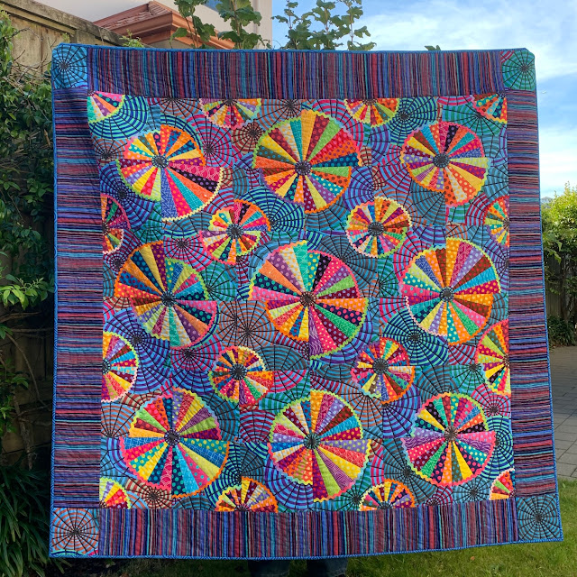 Yes, I have a finished quilt. I'm very pleased to present "You Spin Me Round".
