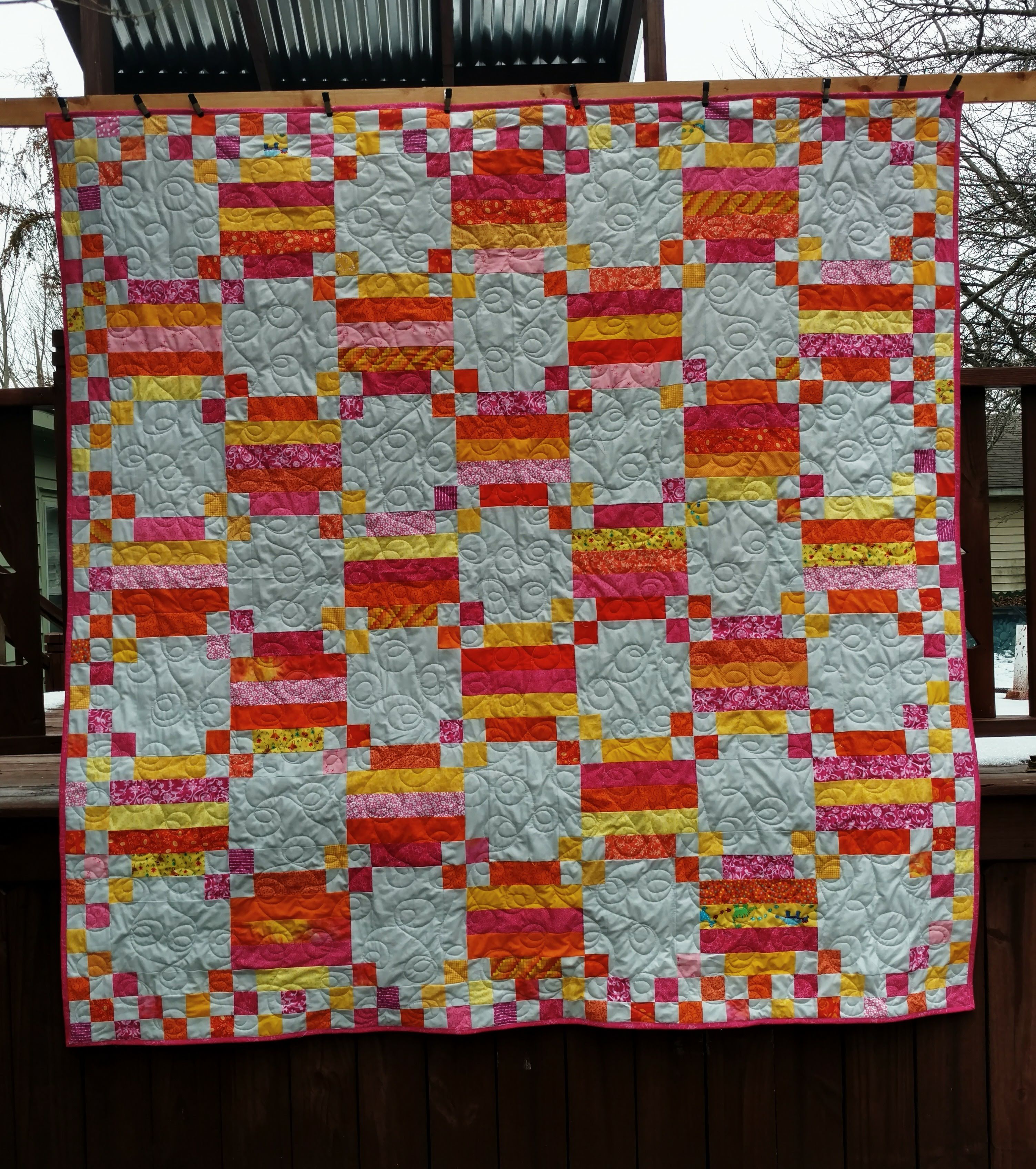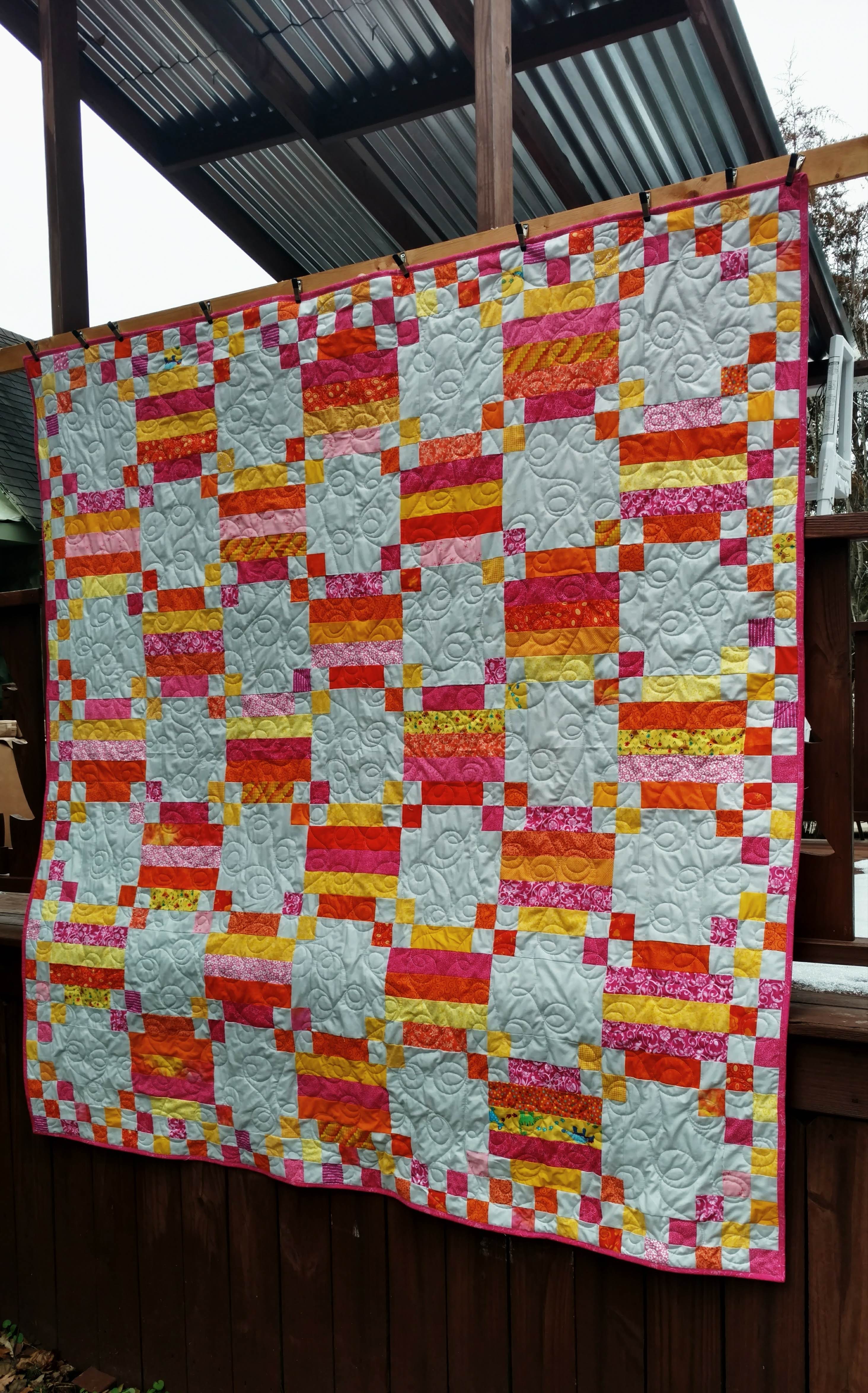 I have a finish for my January one monthly goal at elm street quilts. This is an older ufo ( 2013) made from a jelly roll and free pattern by cindy carter.