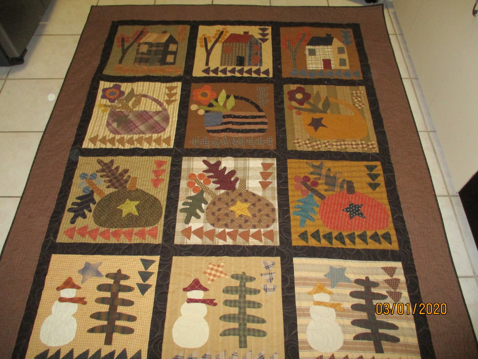 My second finish is "Four Seasons" which is a Jan Patek pattern found in the book "Seasonings".  A quilting friend and myself each made one for ourselves last year.
