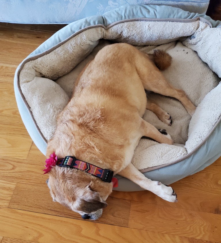 Last Christmas my daughter and I bought Chevy a new collar from Pooch & Tabby of Toronto. It was called Warrior Princess and it was perfect! Chevy was feisty, protective and full of love for her adoptive family and of food (not sure in which order!)