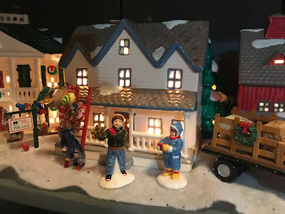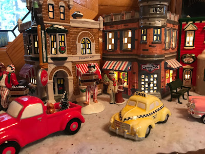 It's another day of sharing my Christmas decorations. This pie safe is the home to my cookbook collection, that it until Christmas rolls around. I move out all of my books, and fill the shelves with my Christmas houses.