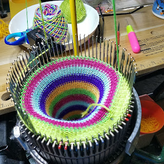 I've been cranking out socks with my new yarn. This pink is so much fun.