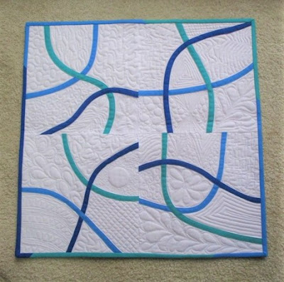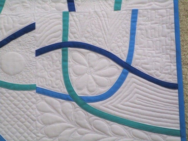 This is a closeup of one of the blocks. You don't have to do any FMQ if you don't want. I'm not an expert in that. I really like to use the walking foot to do the quilting. You can do whatever you want with those open spaces. Maybe add more bias strips. Maybe add some embroidery. Or try your hand had FMQ. I hope ... read more
