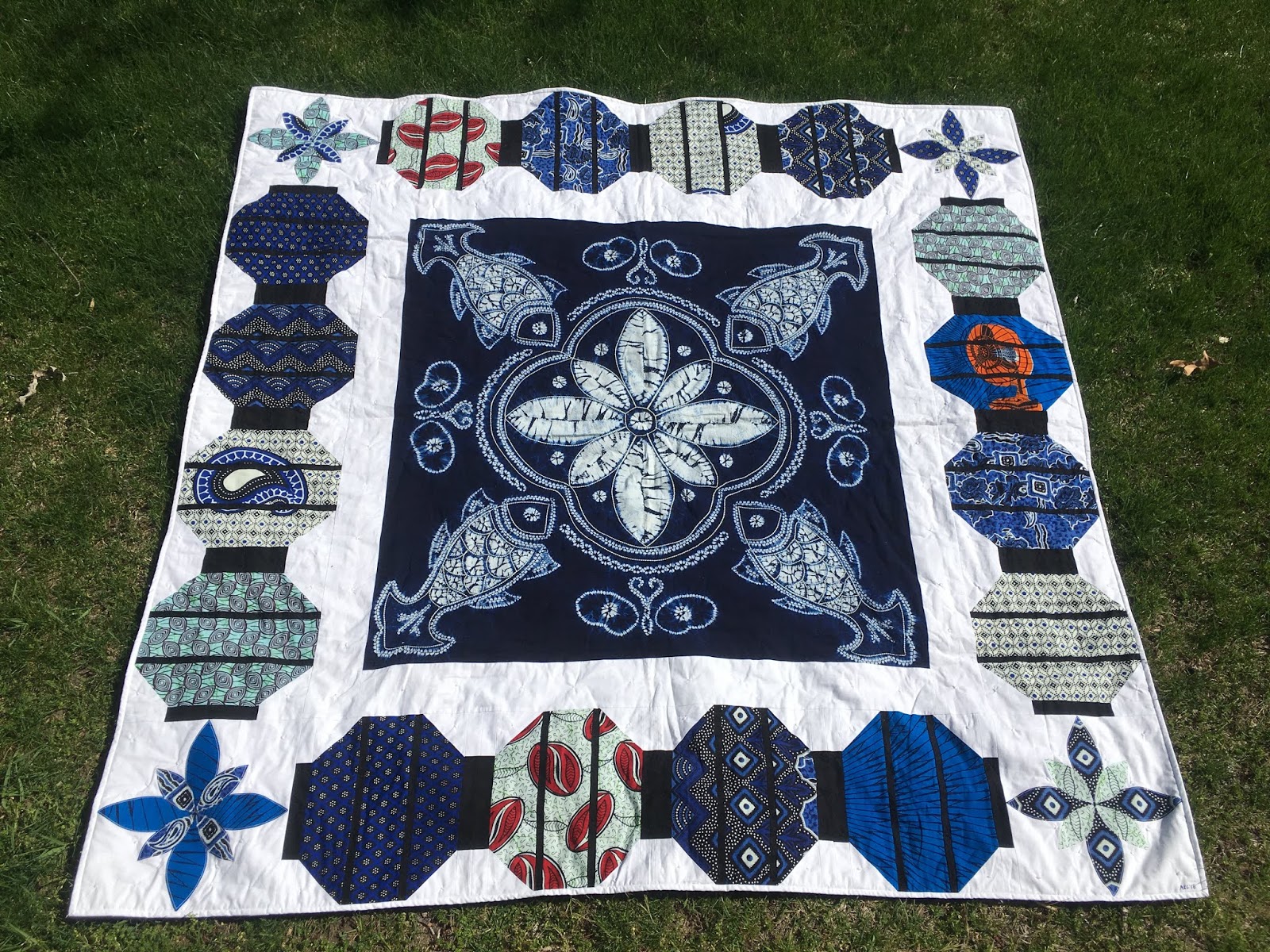 Like all my commissions, this one started out with a discussion with the young man's family. They wanted cotton, with a leafy design, in blue and grey, so I drew up choices.