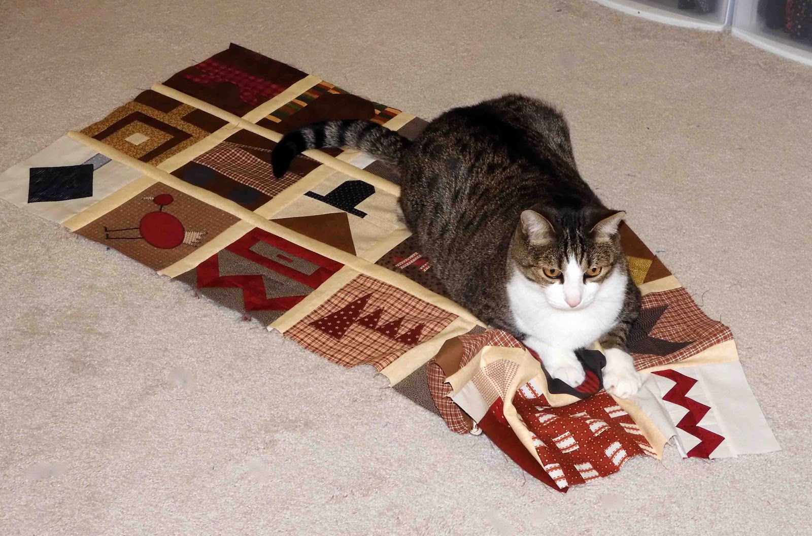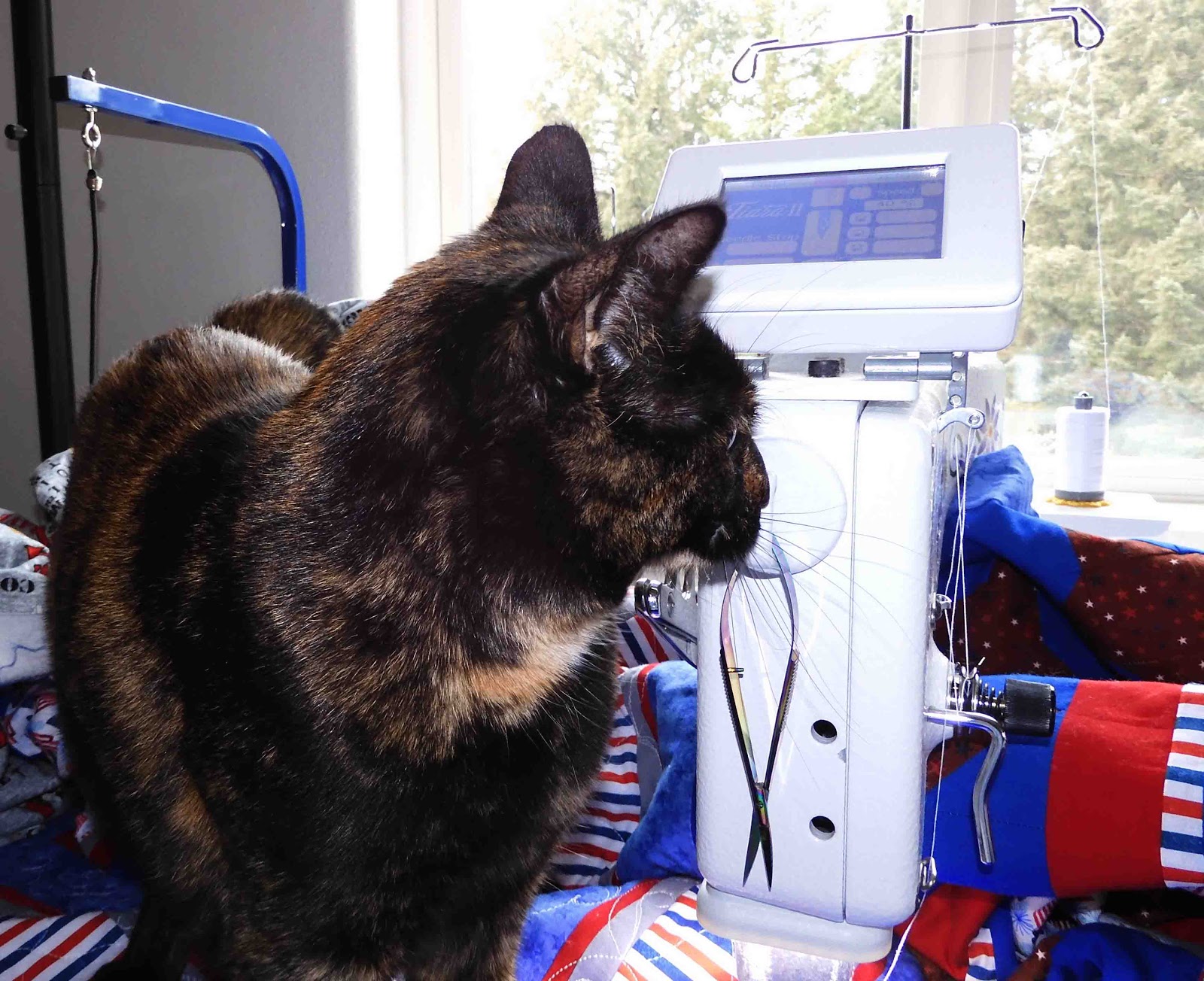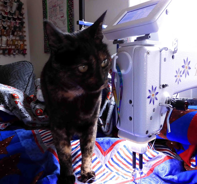 Breaking for treats has the added benefit of gratifying them enough to get them off my work space for a while. Kitties and free motion quilting are not a good mix.