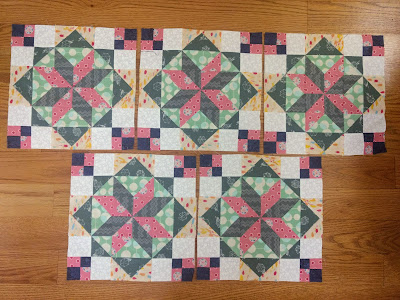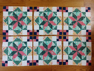 As I have mentioned in some of my recent posts, working from home has not been a boon for sewing time for me. I still am working full time -- just at my kitchen table. I have managed to sneak in sewing time here and there (and quite a bit this past weekend!) and the first thing on the list was to finish up these six blocks.