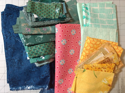 This weekend, after putting the binding on my blog hop quilts for tomorrow, I started pulling fabrics for the upcoming mystery quilt hosted by Bonnie Hunter -- FROLIC!