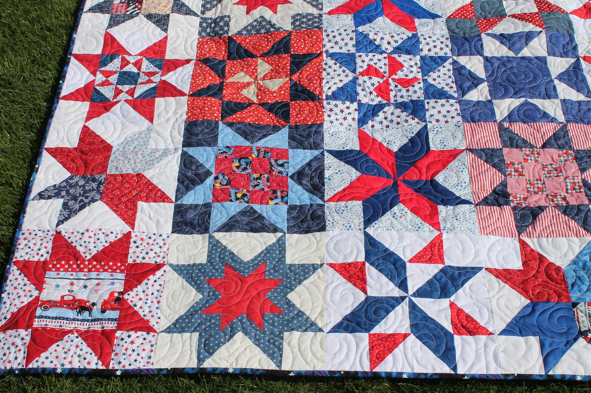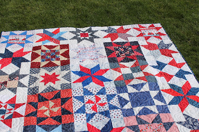 I know I thought I was going to be sharing the second FiddleSticks quilt this week, but I didn't get all of the binding completed. But I will share the first of the red, white and blue quilts I am working on for Covered in Love.