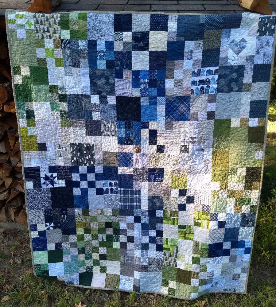 There wasn't quite enough white blocks for the entire quilt so I added in some more colorful blocks in the center of ...