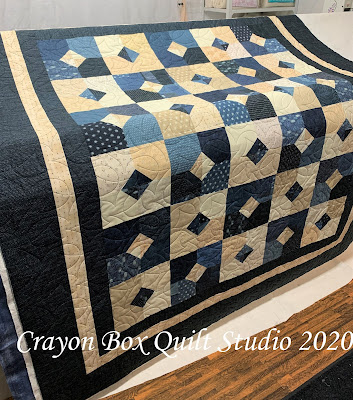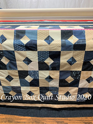 My customer Colleen called me to say that she had a big top to be quilted. I couldn't wait to see what she created. When she arrived with it, needless to say I was excited to get to stitch this one. This is her Navy and White Hunter's Star Quilt.