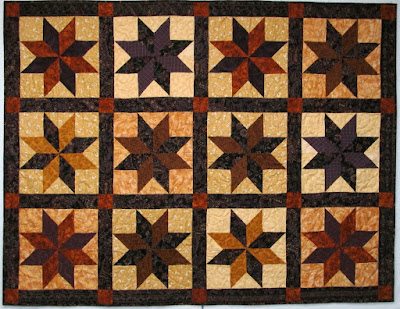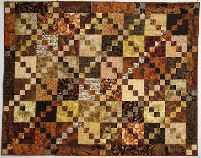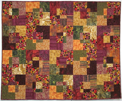 Big and small, but 2 finishes anyway. The 16 patch on the left is all Marcia Derse fabric, both front and back. It is 78" x 95". On the right, a double 4 patch, is Kaffe collective and Martha Negley fabric and is 40" x 59.5".