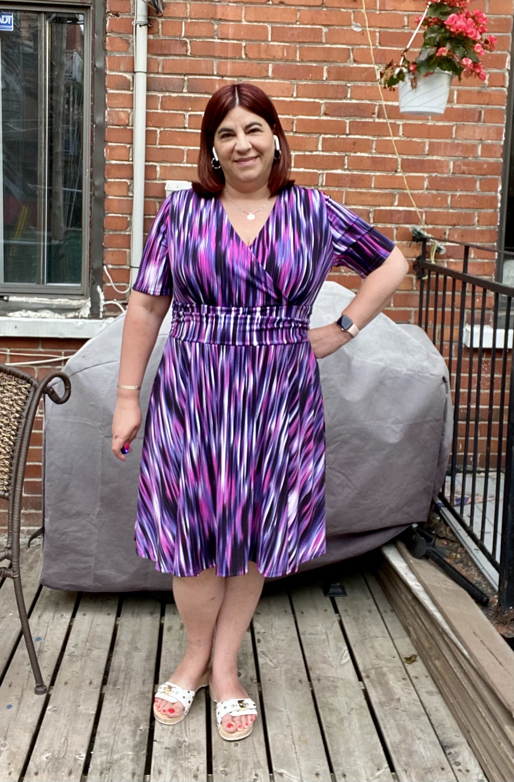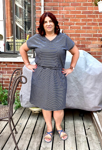 So, in an afternoon I improvised a patchwork block and I sewed it on an interfaced backing. Then I measured the circumference of the T-shirt, then I sewed together the short edges of the piece of fabric making a cylinder and I wrinkled the top edge of it until I obtained a circumference equal to that of the T-shirt. I ...