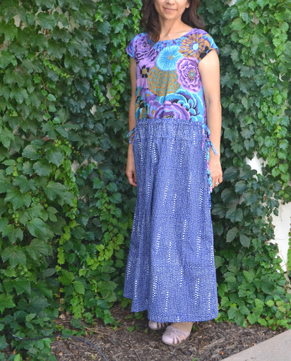 I had an old T-shirt in a good shape and a piece of fabric that I bought a long time ago with no purpose in mind, just because I loved it. I had also a box full of fabric pieces.