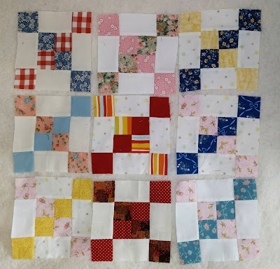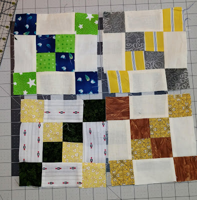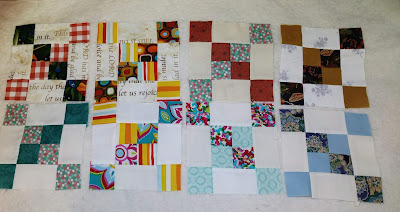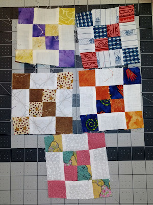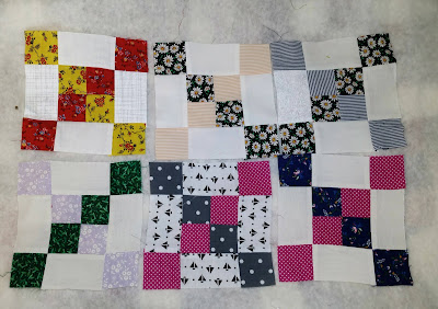 read moreA little bit here and there. I found some bright 4 patches in my reorganization of the project selves. I think I was planning on making a stepping stone quilt with them. In any event, I brought them over to work on as more of a leader/ ender.
