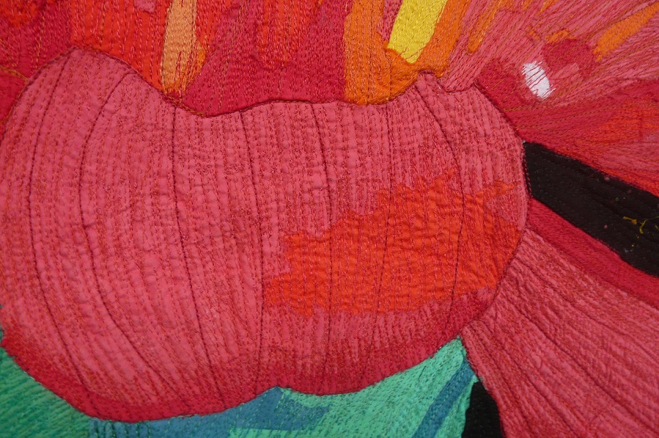 fused applique, extensive thread work, machine quilted