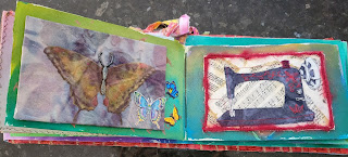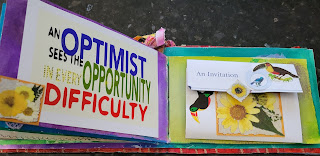 One end overlaps the other. Three metallic buttons seal the flap, and I put more buttons below the top edge. The view shifts as you turn it...Contents include: