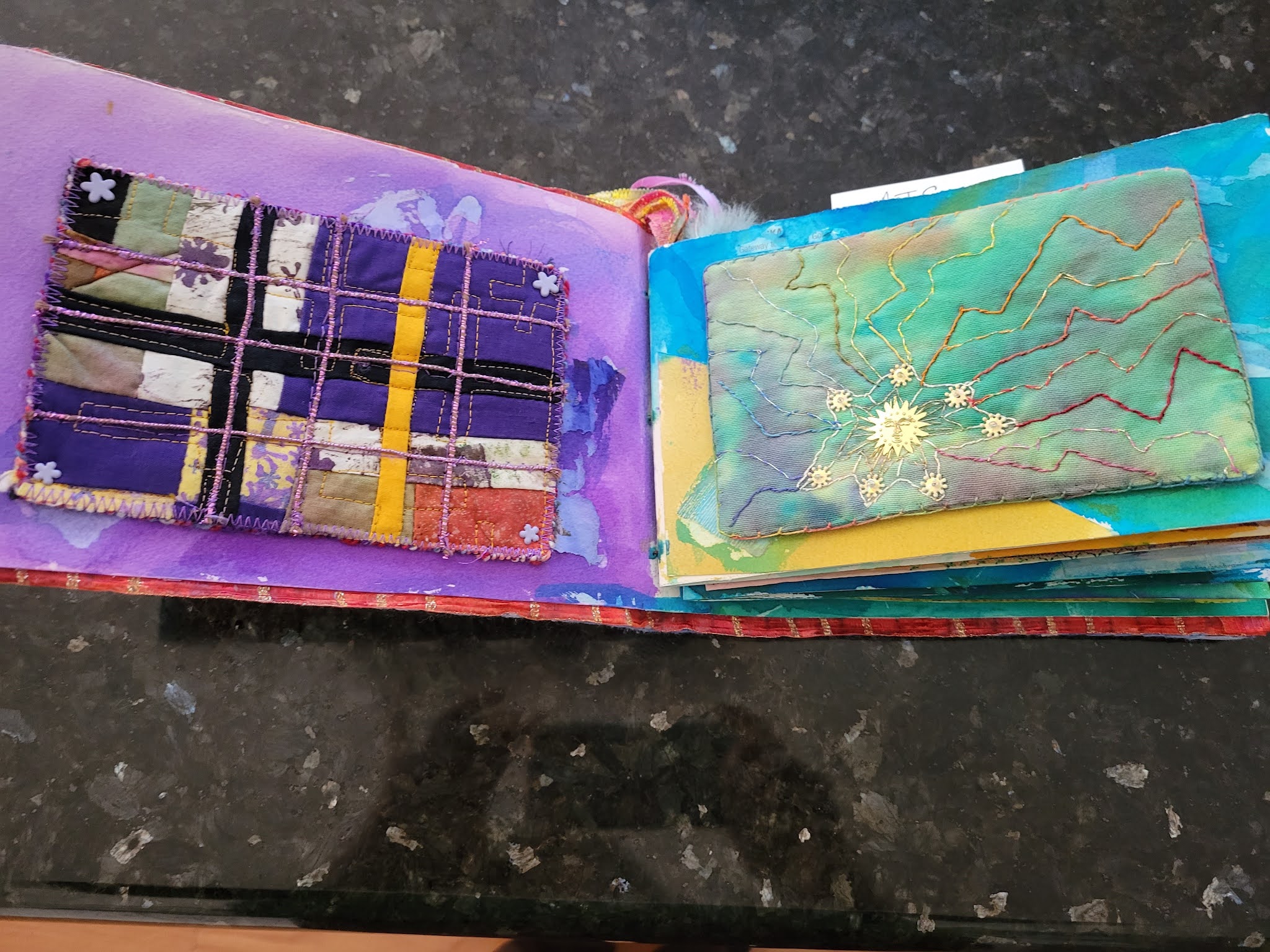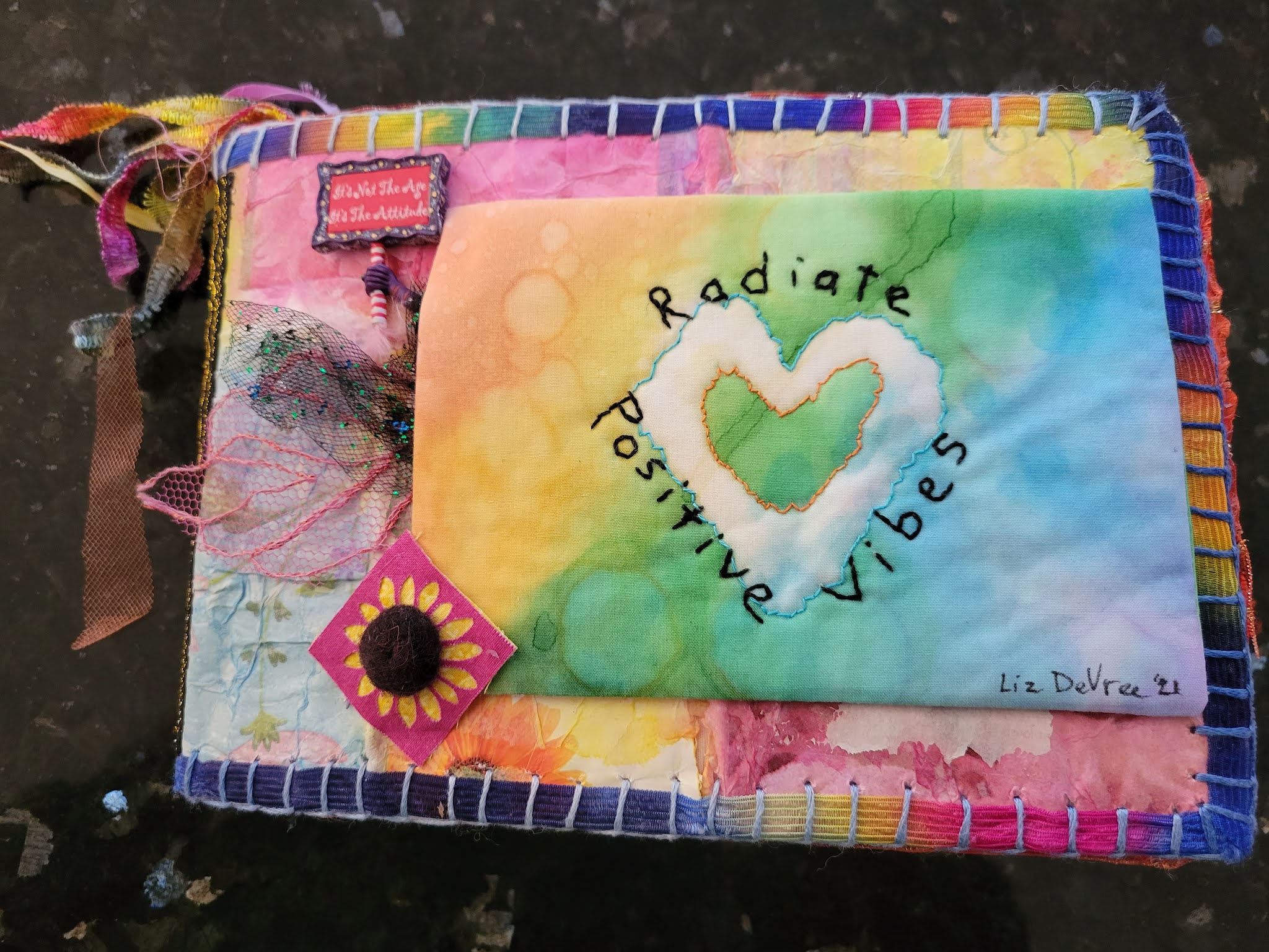 Let's give scrap baskets a double meaning! Made from scraps, especially thread scraps, this basket is also a good place to throw them! It's about 4.5" high and 3.5" across. I used silk, so it's extra fancy, but you can use any fabric and threads you like.
