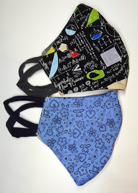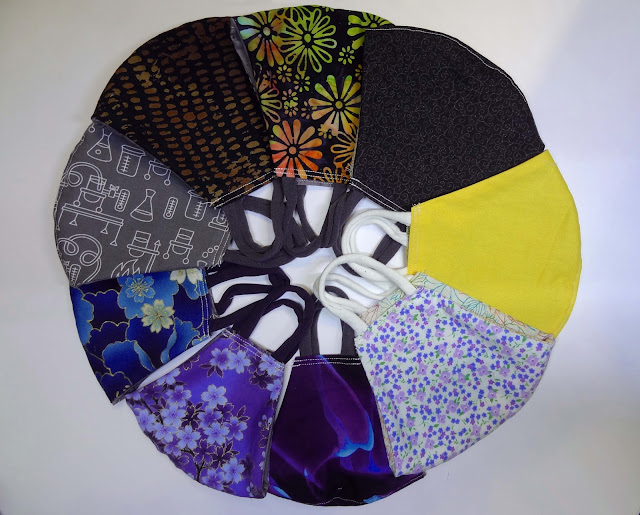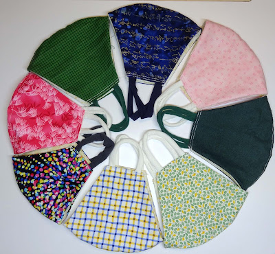 We are back to mandatory masking where we both work. With infections continuing to increase, we'll be wearing masks for a few more months, at least till Halloween. I made a few new ones to replace the masks made with elastic, the t-shirt ear loops are much more comfortable.