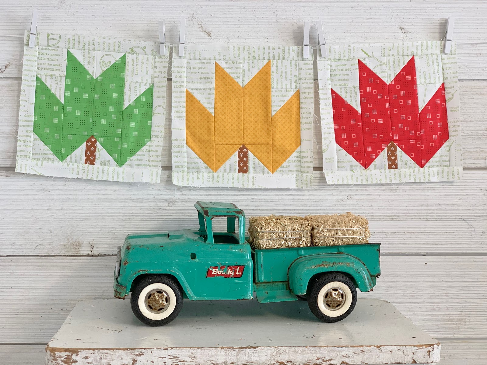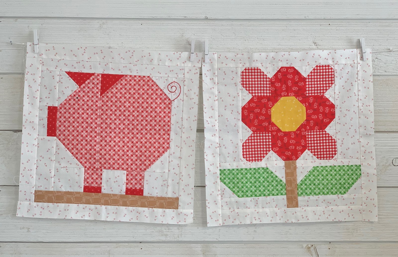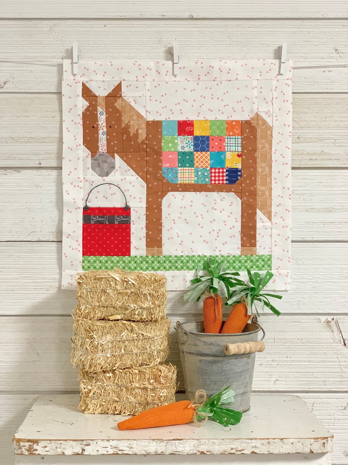 Well hey there, partner! We’re sewin’ up a storm through another month of the Farm Girl Vintage 2 Quilt Along! It’s been quite a ride and there is still a way to go! We’re sew excited to see your progress. There are 45 blocks of the Farm Girl Vintage 2 Sampler Quilt and we are 38 in! This much-anticipated sequel to Farm Girl Vintage features 6″ and 12″ quilt blocks, inspired by Lori Holt’s rural roots. She has also designed 13 new projects, including quilts, pillows and a pincushion that use these cute-as-can-bee blocks!