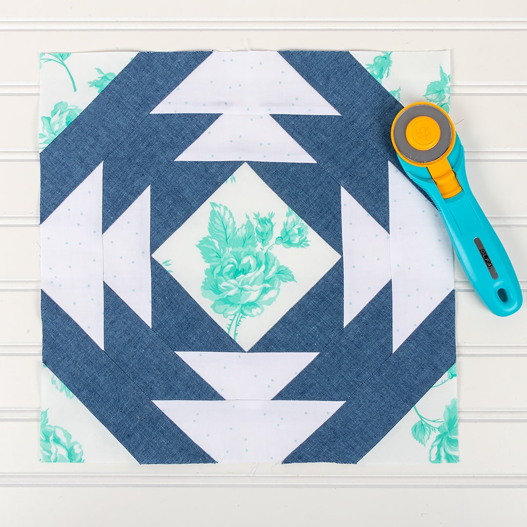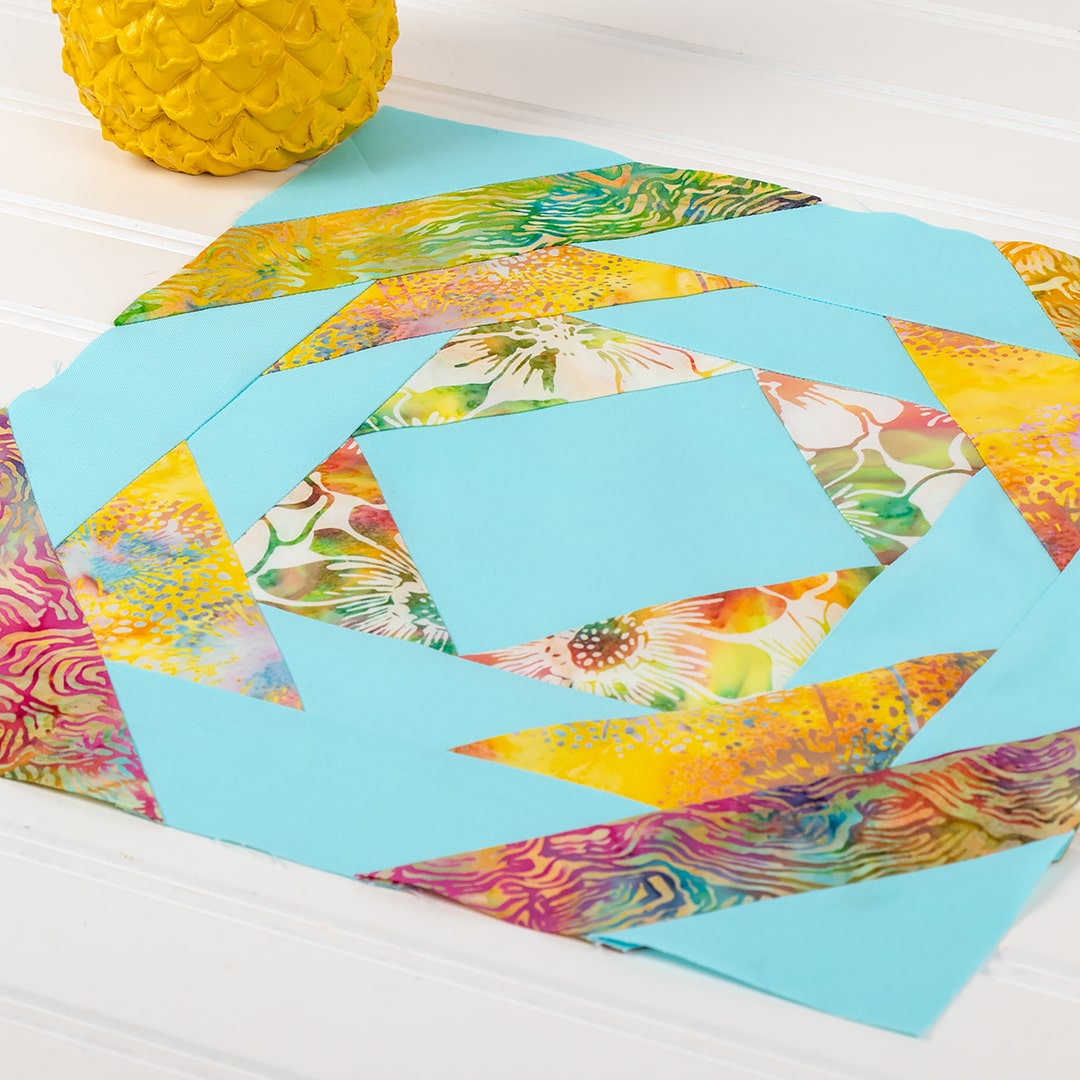 Today we’re highlighting this stunning modern quilt called the Gemstone Quilt! The best thing about big, brilliant blocks like these is they are so well-suited to showcasing color. Our quilt features the I Heart Ombre Metallic by V & Co. for Moda Fabrics for a bold, modern look, but we also think this is the perfect quilt to rep your school colors!
