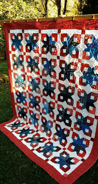I finally finished it. This is a free pattern at quiltville. I had this scrappy project in a blog post here in 2018 and blocks here.