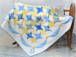 I might be (a LITTLE BIT) biased, but I really like the design she created. Some pieced elements, some applique. Can be created vertically as a wall hanging (as shown here). Or horizonally in a row. Tablerunner? I want to make a baby quilt with the flower blocks and a section with the applique Forget Me Not words.