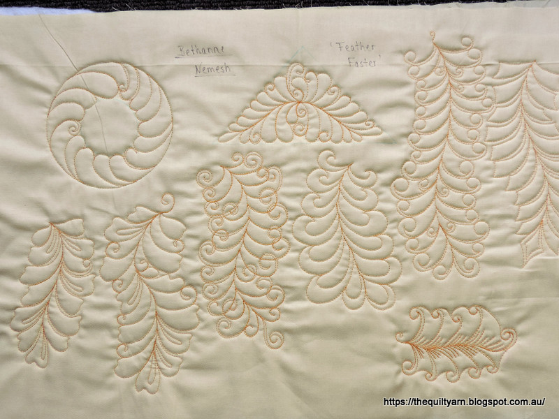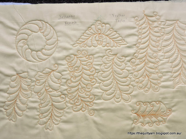 The online course with Bethanne Nemesh has started. Had our first session and it was fabulous...very organised, structured and very intense. My head was somewhat spinning afterwards and I was thinking ...OMG, this is just the first lesson! The level of detail was outstanding and it was helpful for the beginner and more advanced quilter alike. Absolutely loved the detailed explanations, hints and tricks to improve my feathering. I did not watch the live session as that would have meant getting up in the middle of the night and to my delight when I watched in on FB the ...