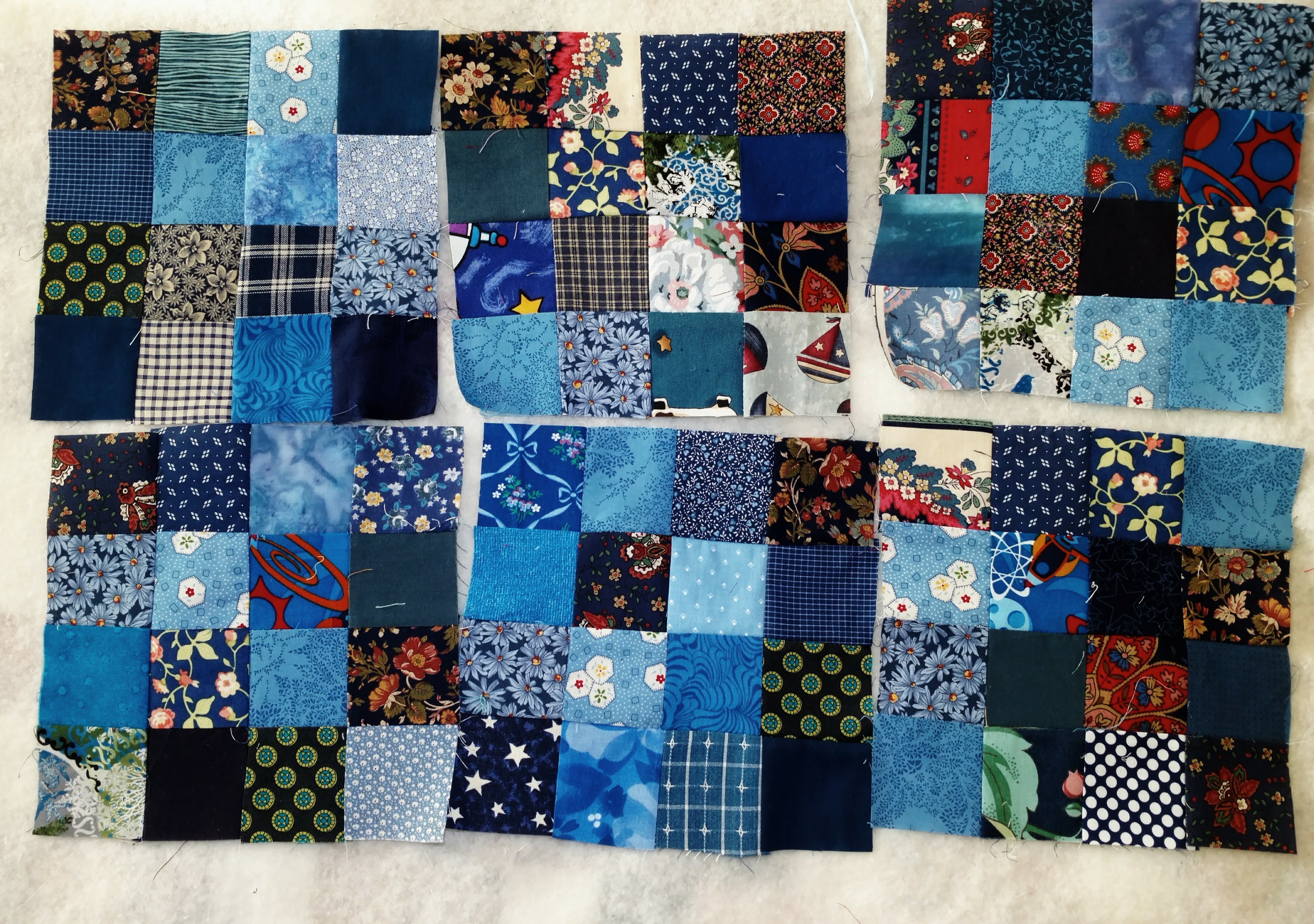 I really like making these blocks. There is quick progress, and, it is very soothing to match pieces by the size that is needed. I grab a handful of crumbs and ...