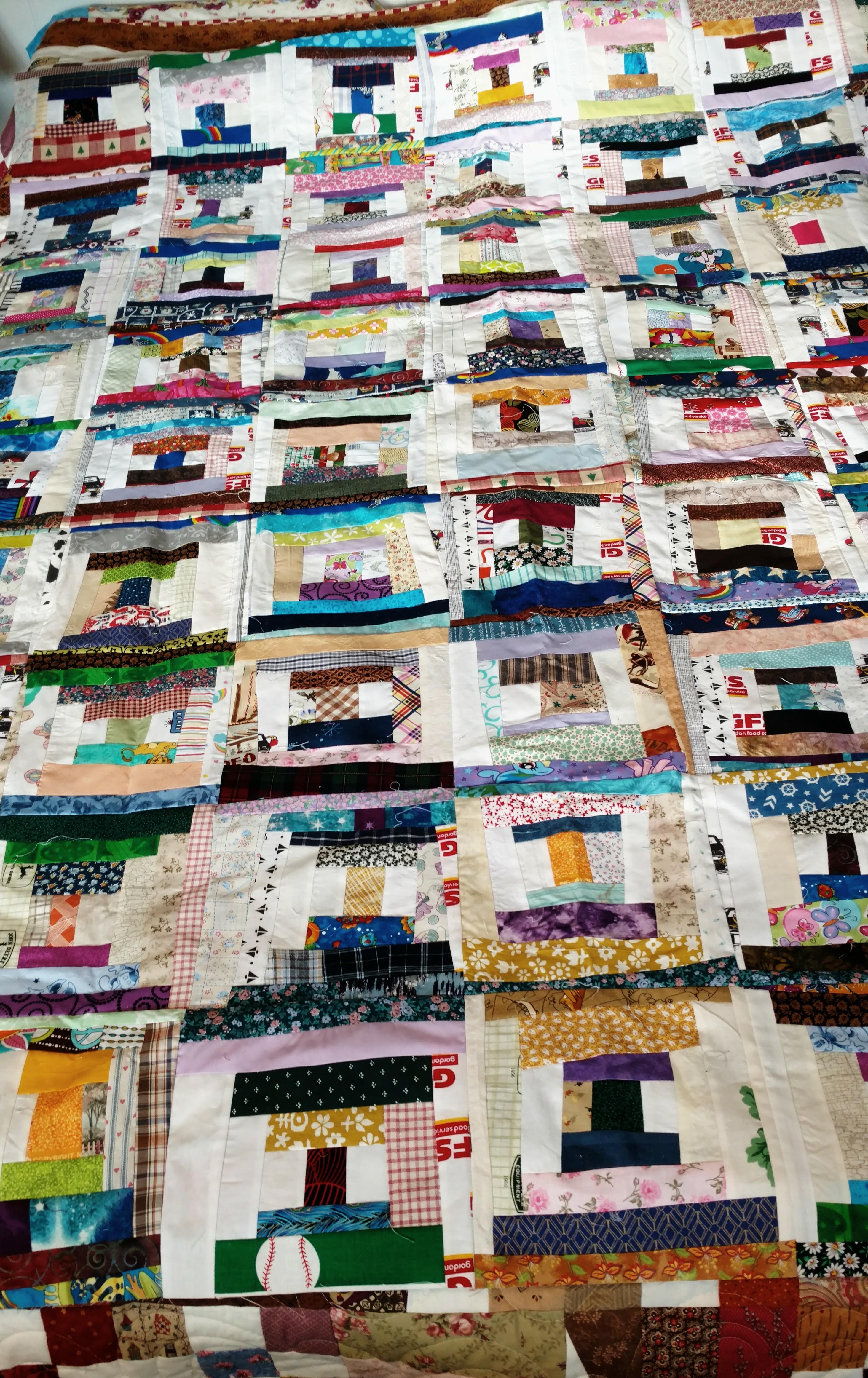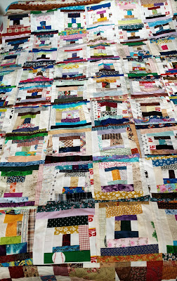 I think I have a top for the wonky courthouse quilt. I went from blocks to top pretty quickly. It is 56 x 72 - is that big enough? This is also the third wonky courthouse I have made, and, none of them have been quilted. But, I have more than enough strings and crumbs to sew many more. I started when I saw that Bonnie Hunter was making one.