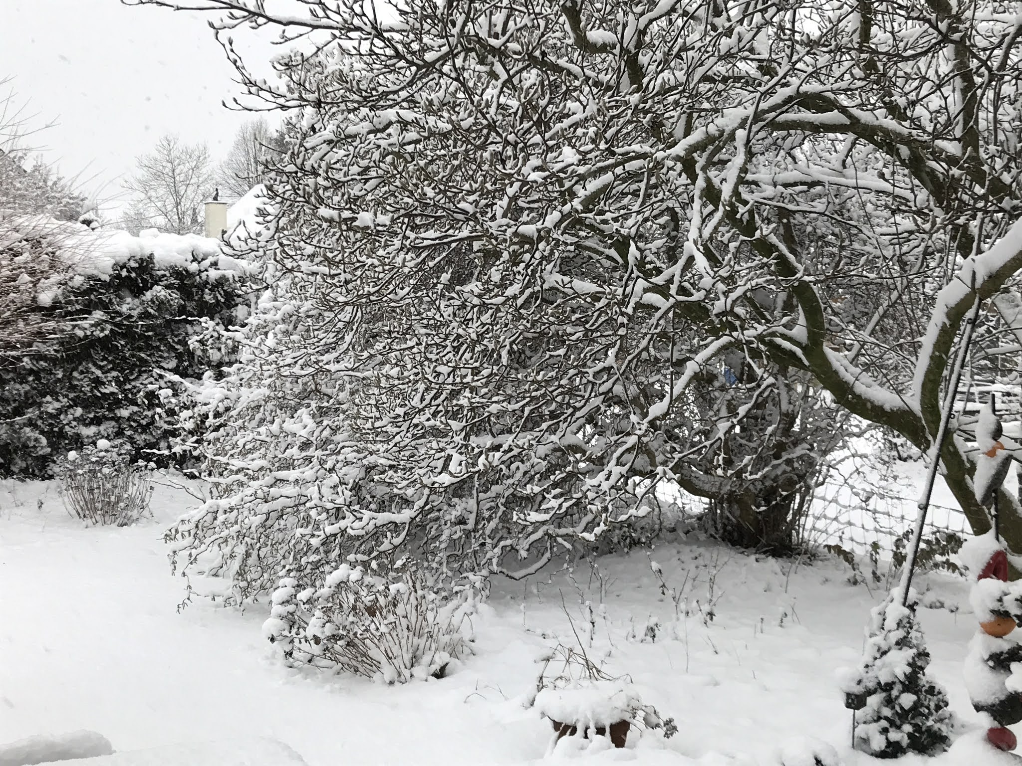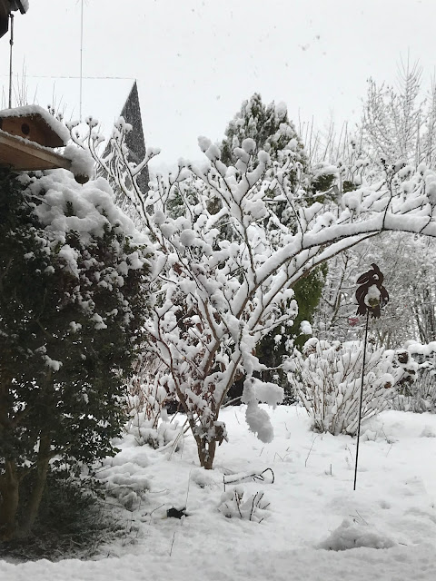 Here on last Tuesday the winrwe came! It was beautiful looking at the snowfall and how it covered everything.