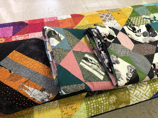 Since I'm trying to focus on getting projects actually finished, this one wasn't hard to get to the completed top stage and then it was added to the pile to get quilted. I turned the blocks into a table runner for my long dining room table but it could just as easily become a skinny wall hanging if I so choose at some point.