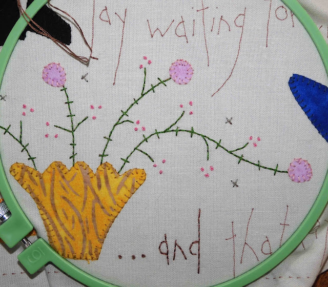 When I'd stitched that far, it was time to pack up the cat for a trip to the vet. He was not a happy traveler, let me tell you.
