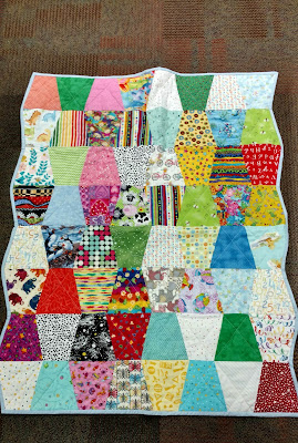 Our guild met on Saturday to sew quilts for charity. We donate to the police department for trauma children and for healthy families and education. One of our members had her Florida guild do these large tumblers for their donation quilts and she wanted us to try them as well. We cut one Saturday and made kits. And this Saturday, we sewed the kits together for a quilt.